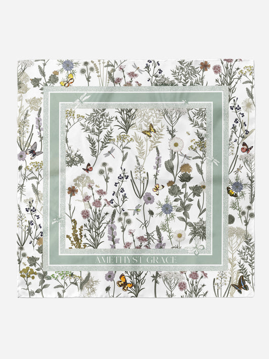 Garden Reverie Square Scarf – Pastel Green – Silk Wool Modal Blend