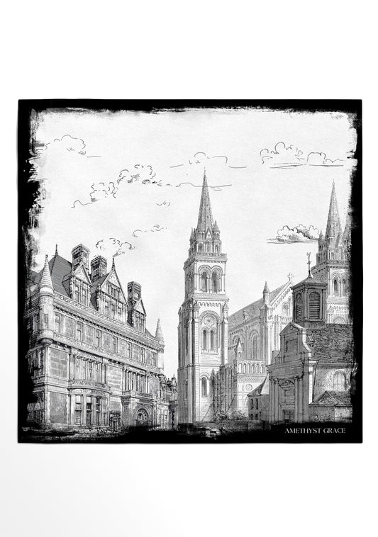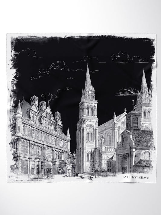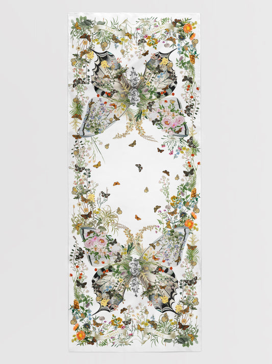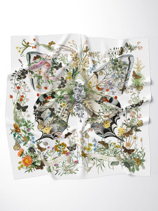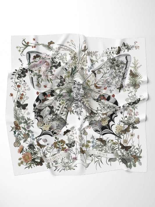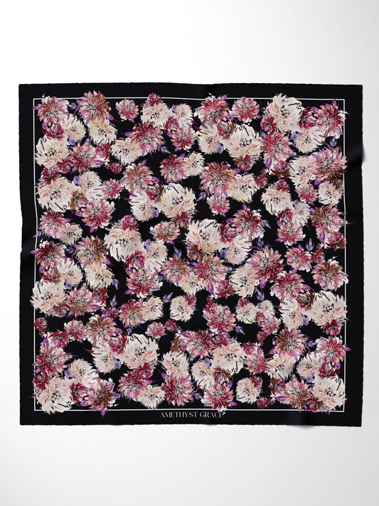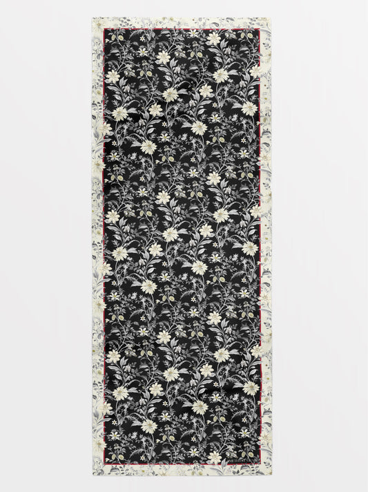 Garden Reverie Square Scarf – Black & White – Silk Wool Modal Blend