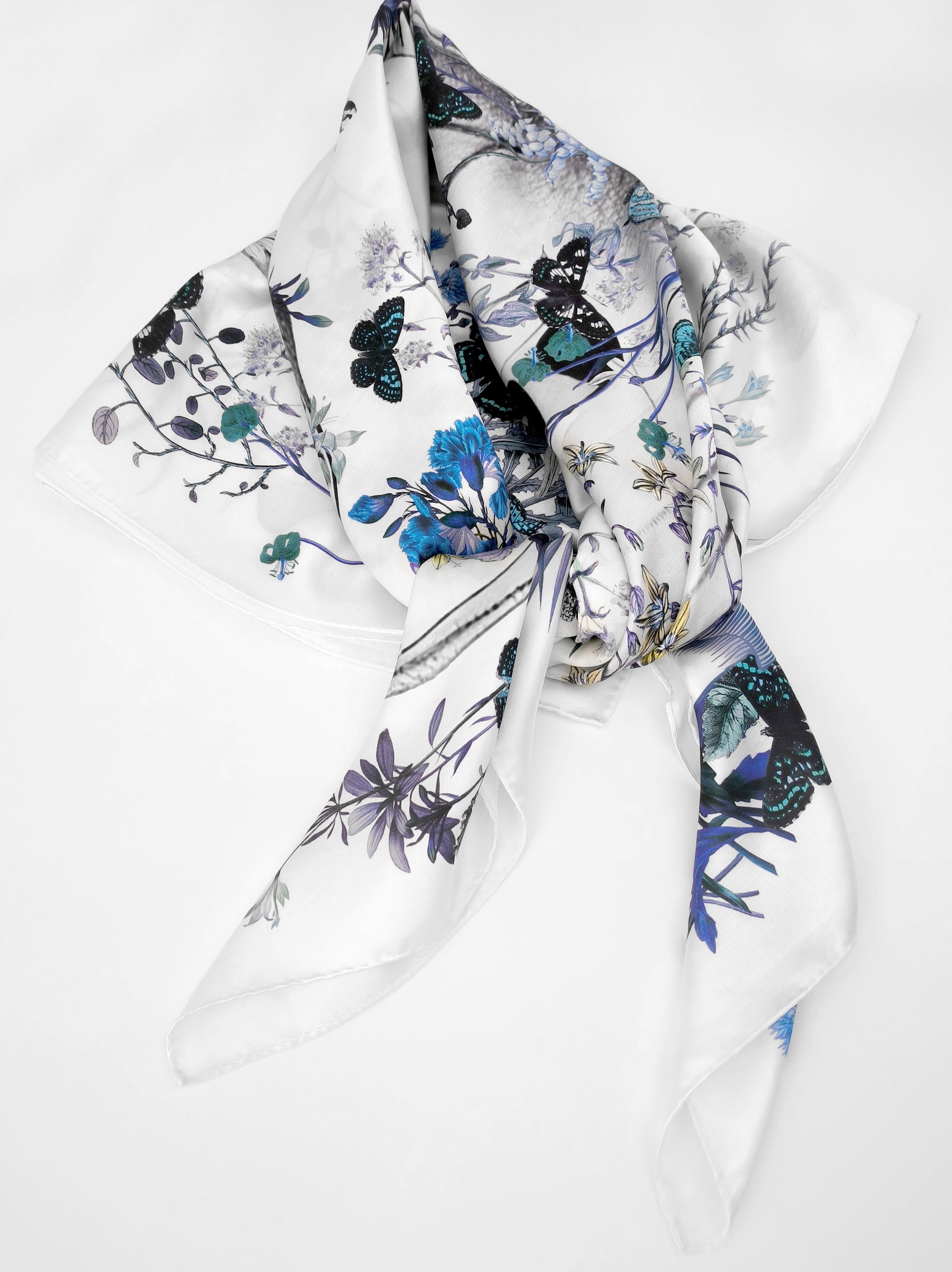 Introducing the Peach Garden Square Scarf, a masterpiece of natural beauty and romantic elegance. Featuring a stunning print that seamlessly blends delicate butterflies and vibrant floral elements, this scarf captures the essence of nature’s charm. Crafted from an exclusive silk-wool-modal blend, it offers the perfect combination of luxurious softness, warmth, and breathability. The intricate design of butterflies and flowers creates an enchanting piece, while the premium fabric ensures ultimate comfort, making this scarf not only a visual delight but a practical indulgence. A true celebration of timeless beauty and refined luxury.