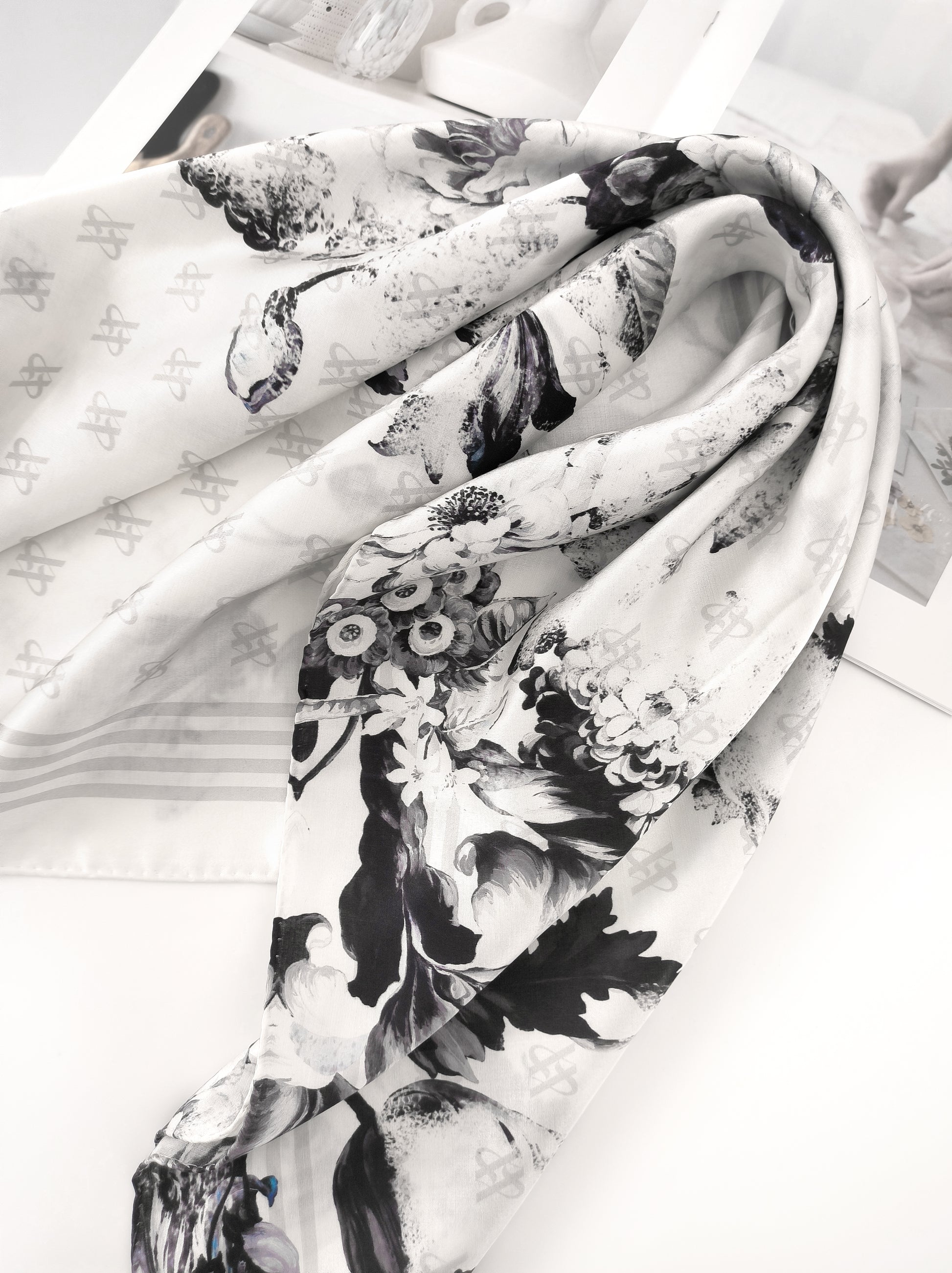 Introducing the newly launched abstract flower silk wool modal square scarf – a perfect blend of unique design and exceptional materials. This season’s must-have accessory, crafted from our exclusive silk-wool-modal blend, offers unparalleled sophistication. The smooth, lustrous feel of silk is beautifully combined with the soft elasticity of wool and modal, creating a fabric that is both luxurious and comfortable. With its striking abstract floral design and premium fabric, this scarf is the ideal gift for anyone with a refined sense of style, making it a truly standout piece this season.