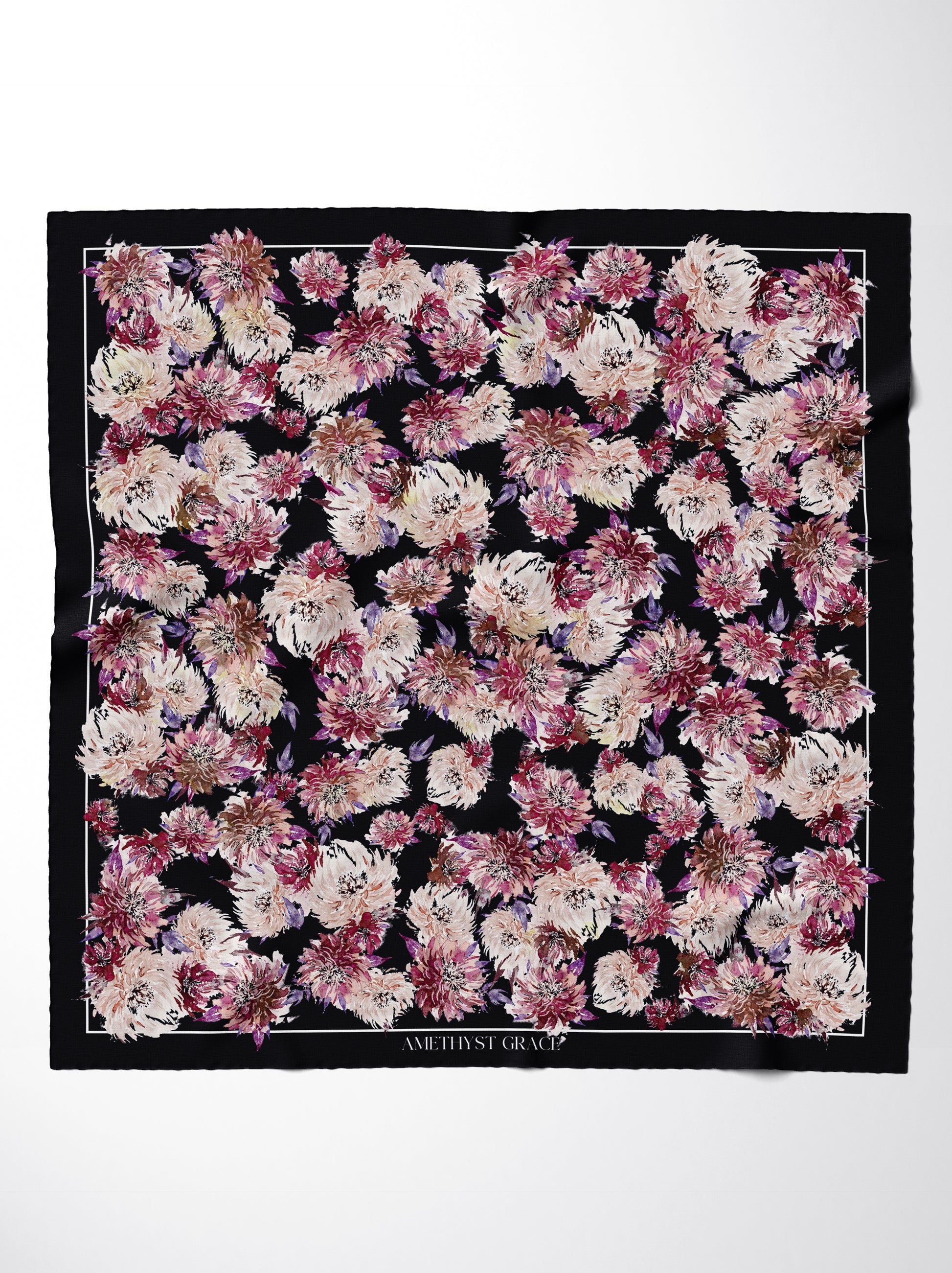 Petal Vibe Print Scarf – Black & Red – Silk Wool Modal Blend